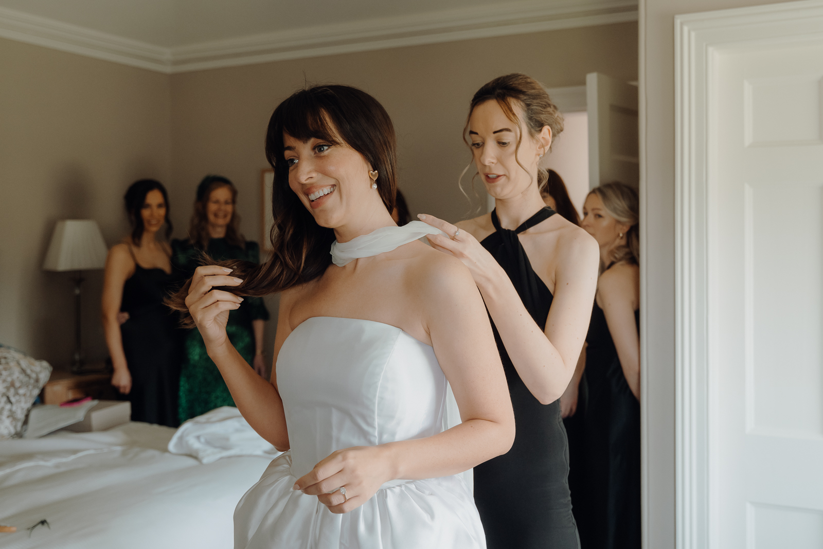 I loved working with Carina on her beautiful silk mikado gown. It featured a structured modern top with a gorgeous puffed hip and tapered hem.