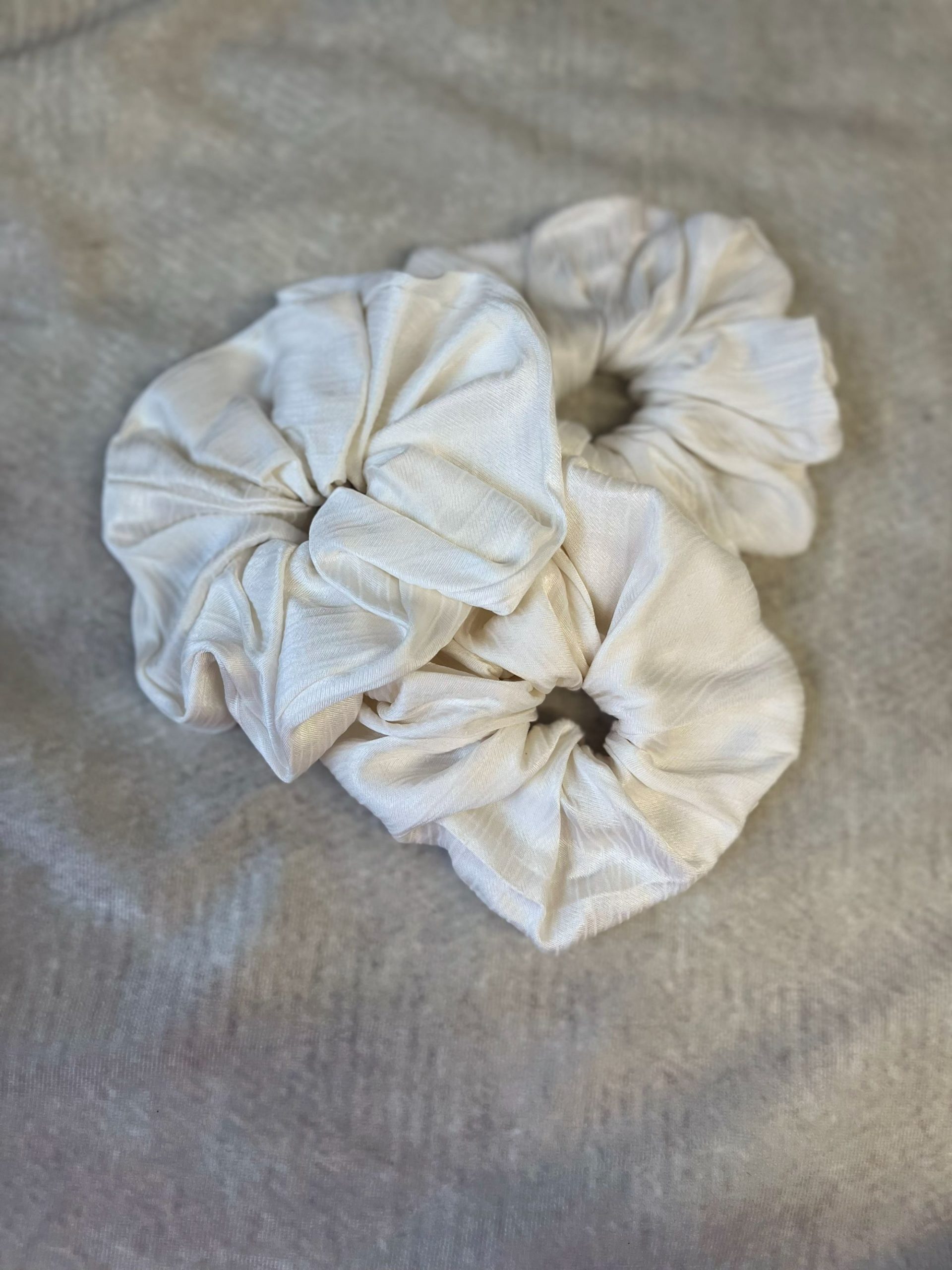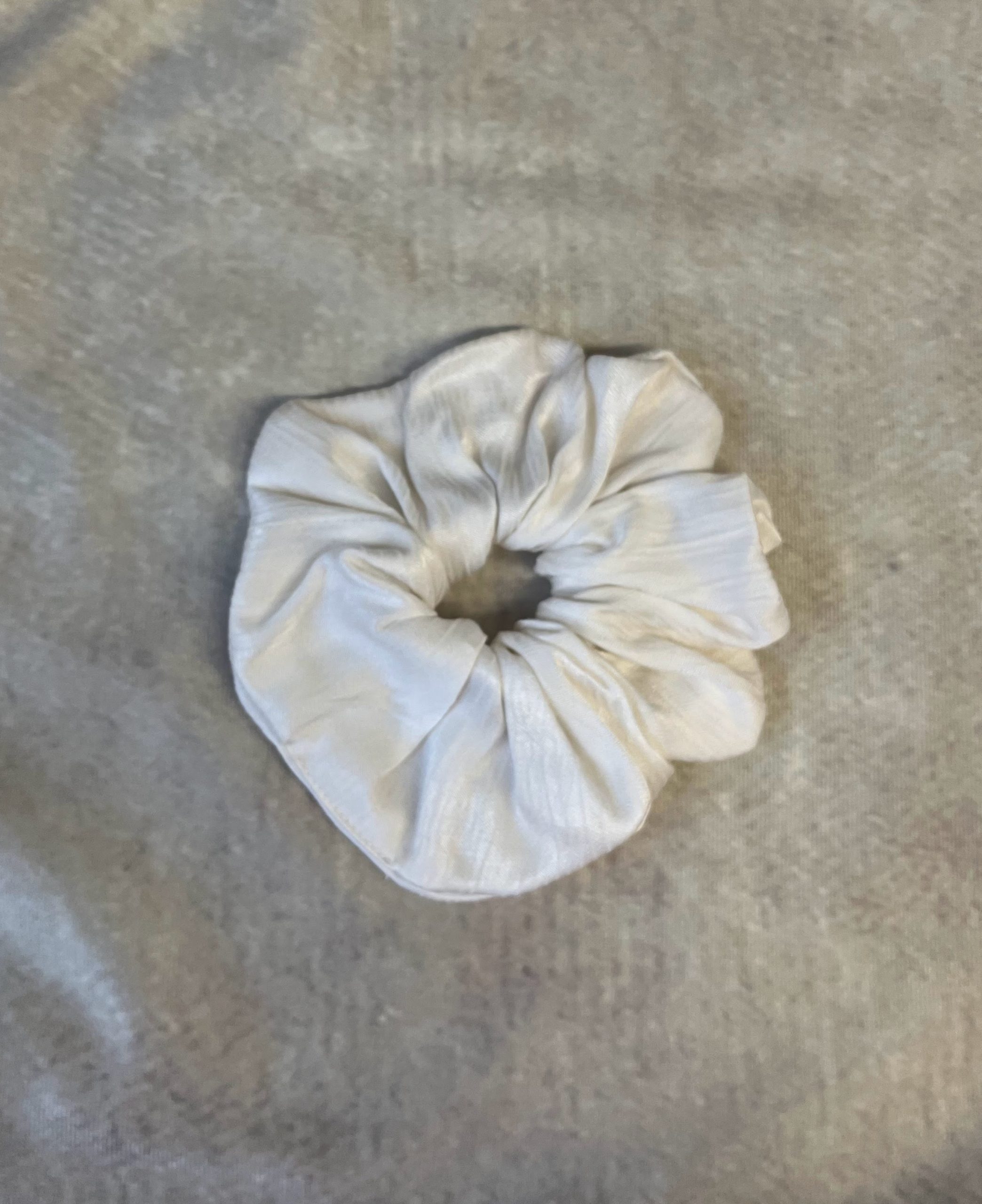 Ivory silk satin zero waste scrunchie made from silk offcuts