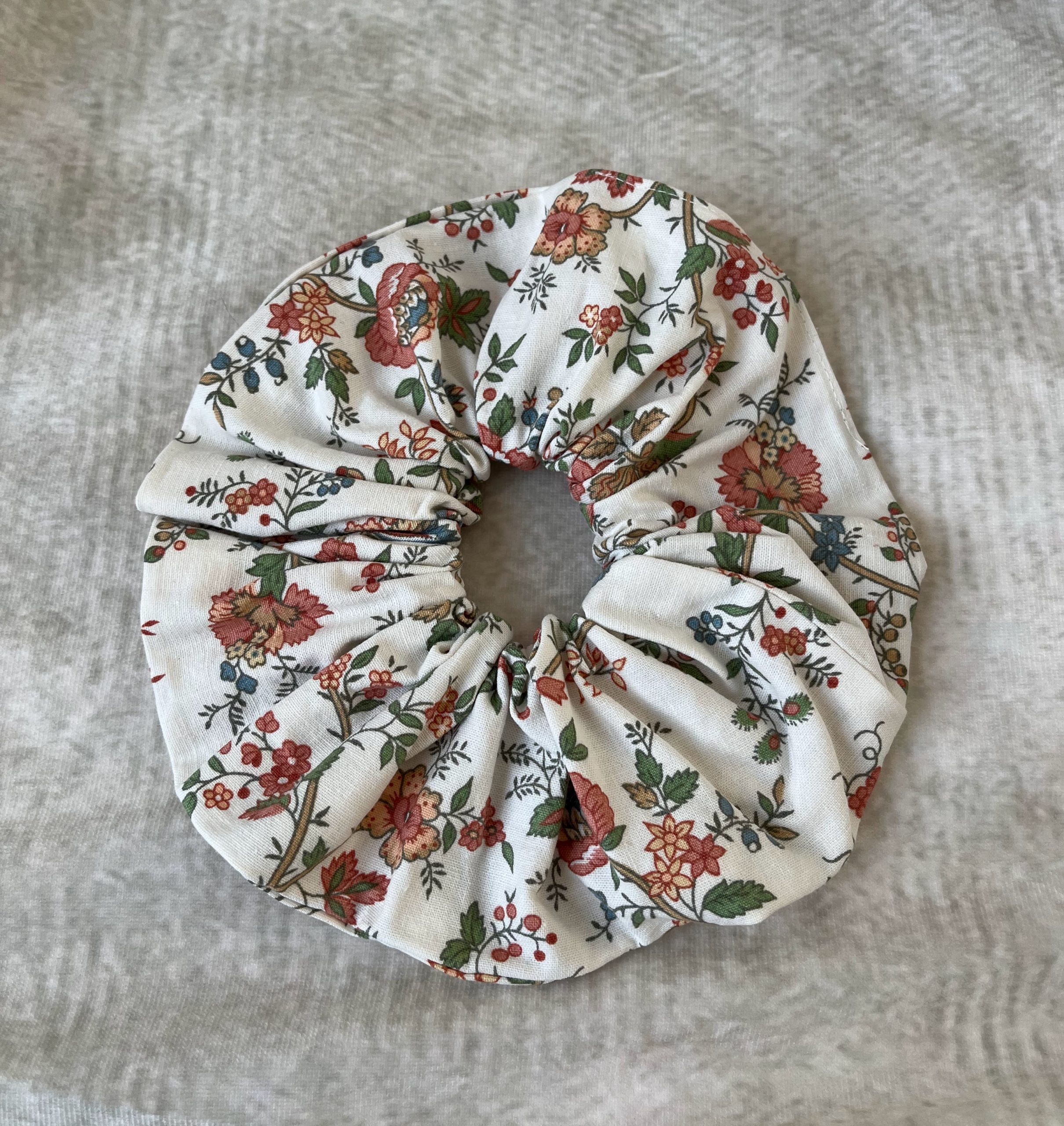 Vintage floral cotton scrunchie, made from beautiful vintage sanderson fabric